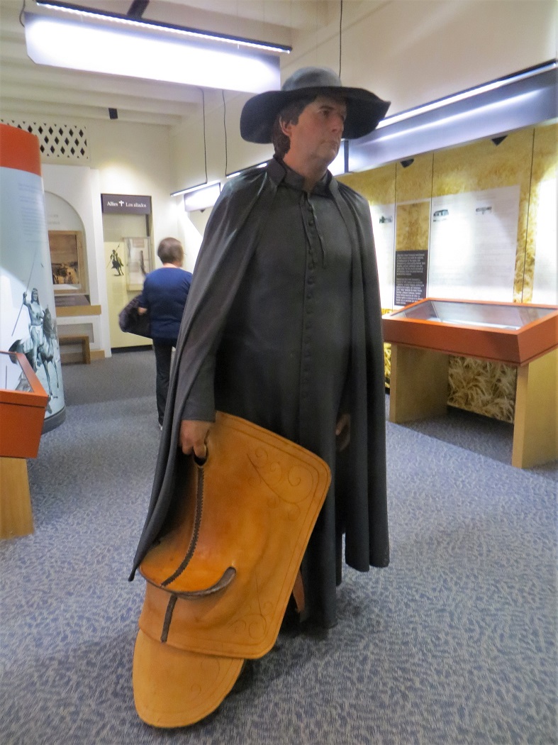 As many of you may know, the final remnants of the Tucson Presidio–and there wasn’t much left by then–was demolished in 1918. Then in 1999 voters approved the money to reconstruct part of this historic building. First an archeological dig was completed on an area which had been used as a parking lot. Then a new presidio was built. The Presidio Musem was finished in 2006. And some very beautiful murals were added to the interior walls to suggest how the space was used. To see more about the Presidio today go here.